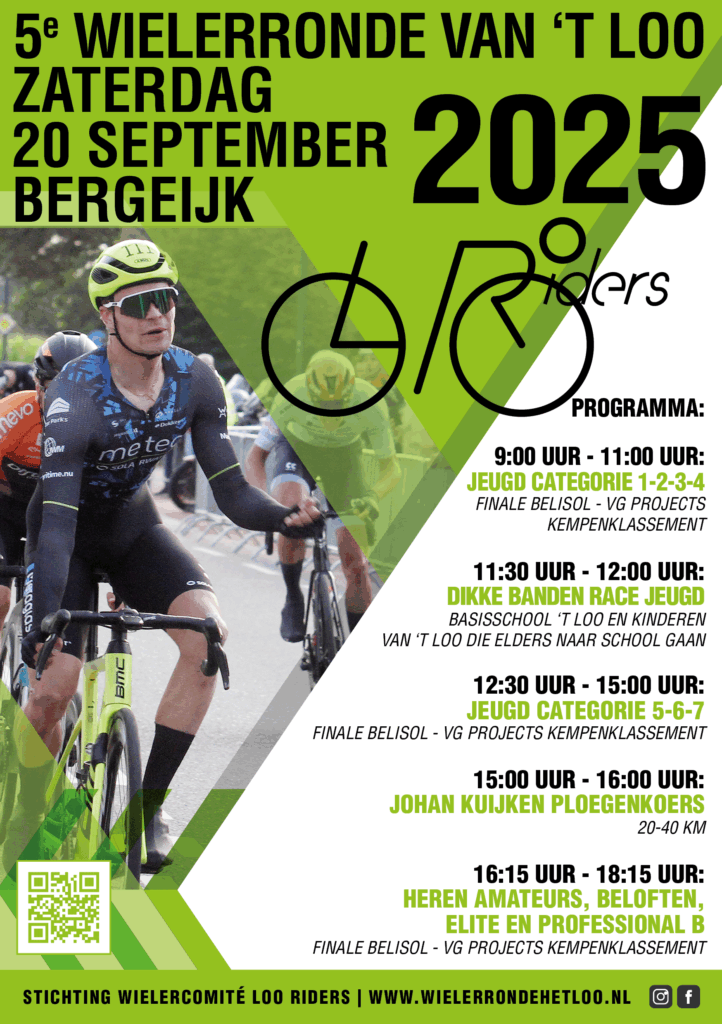 De wielerronde van ’t Loo wordt verreden op zaterdag 20 september 2025.
